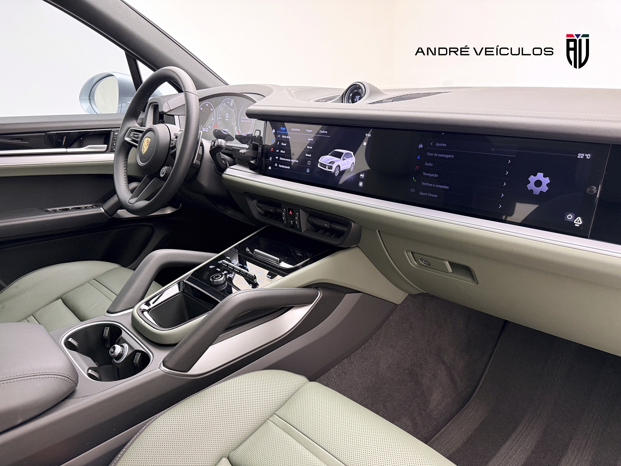 • Interior em couro bicolor liso preto/ verde noite
